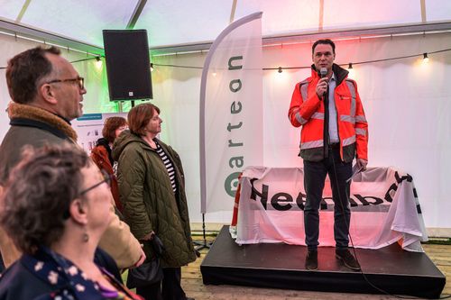 Het officiële startmoment vond plaats in een tent op het plantsoen bij de Essenstraat, samen met omwonenden en partners. Na korte bijdragen van Parteon en Heembouw werd samen met de bewonersgroep ‘Nieuwbouw Bomenbuurt’ een houten bankje onthuld, een blijvend element in de openbare ruimte, als symbool voor ontmoeting en verbinding.